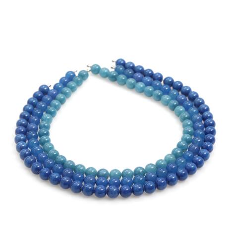 2542/1249Ole Lynggaard: Three necklaces with beads of polished blue gemstones with Lynggaard endpieces. L. 41-45 cm. (3)