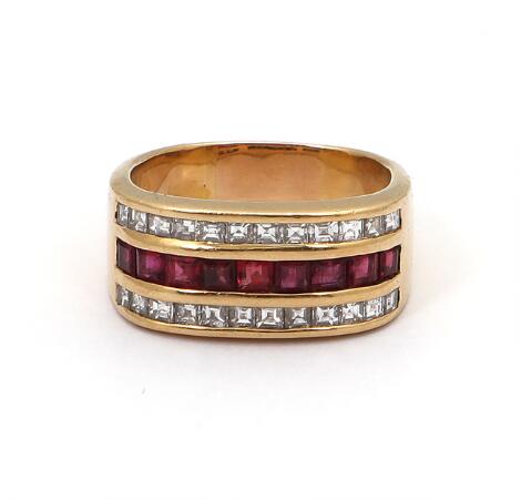 2542/1250Stenstrup Juveler: A ruby and diamond ring set with numerous rubies and diamonds, mounted in 18k gold. Size 58.