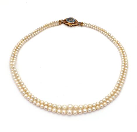 2542/1251Viggo Wollny: A graduated pearl necklace set with numerous pearls. Pearl diam. app. 3-6 mm. L. 44 cm.