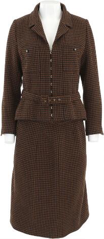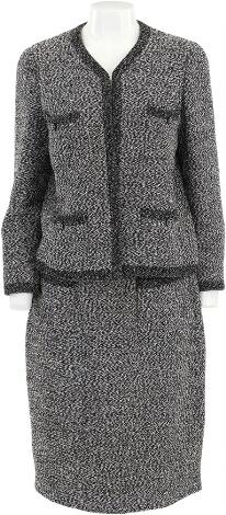 2542/1278Chanel: A set of wool comprising a jacket and matching skirt, both with black/dark brown print. Size 46 (FR). (2)