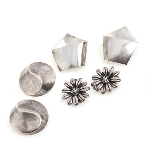 2542/1247Georg Jensen, a.o: Three pairs of sterling silver ear clips. Diam. 2.5-3 cm. (6)
