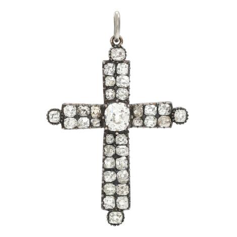 2542/1254A diamond pendant set with numerous diamonds, mounted in 8k white gold and silver. L. 4.5 cm.