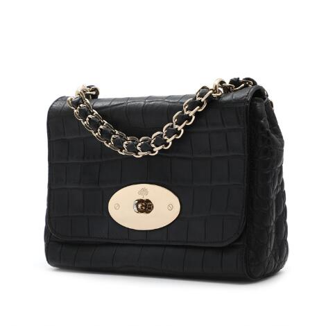 2542/1272Mulberry: "Cecily" bag of black embossed leather with gold tone hardware and double chain strap. 2013.