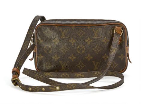 2542/1283Louis Vuitton: A "Marly" bag of brown monogram canvas with brown leather trimmings and gold tone hardware. 1994.