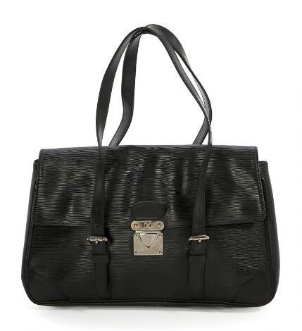 2542/1270Louis Vuitton: A "Segur MM" bag of black Epi leather with silver tone hardware, two handles and one back pocket.