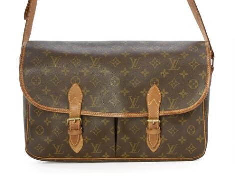 2542/1294Louis Vuitton: A "Gibeciere" bag of brown monogram canvas with brown leather trimmings and gold tone hardware.
