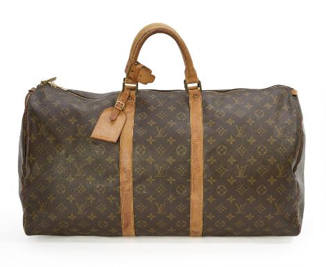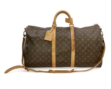 2542/1296Louis Vuitton: A "Keepall" travel bag of brown monogram canvas with brown leather trimmings. 1991.