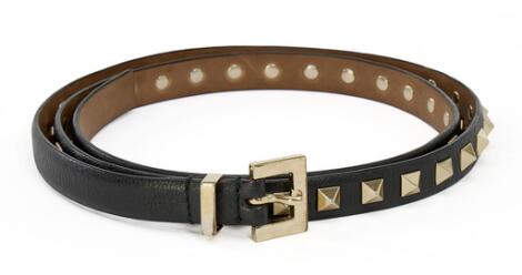 2542/1275Valentino: A "Rockstud" belt of black leather embellished with numerous golden studs. Adjustable L. app. 88-95 cm.