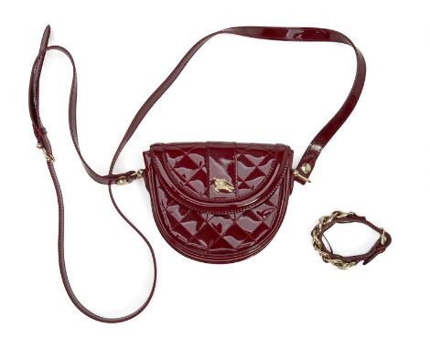 2542/1302Burberry: A set comprising a bracelet and a bag, both of dark red patent leather. (2)