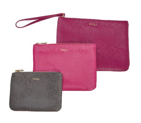 2542/1305Furla: A collection comprising of three pouches/clutches of respectively greyish and pink leather. (3)