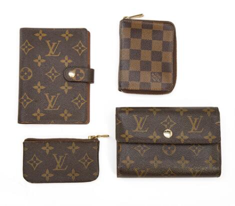 2542/1299Louis Vuitton: A collection comprising of two wallets, a key pouch and a calender, all of canvas. (4)
