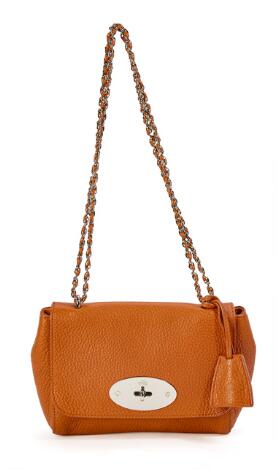 2542/1308Mulberry: A "Lily" bag of orange leather with gold tone hardware, chain strap and a turn lock on the front.