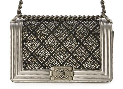 2542/1269Chanel: A "Boy" bag of silver leather with decorations, silver tone hardware and chain strap.