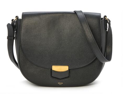 2542/1273Celine: A bag of black leather with gold tone hardware, adjustable shoulder strap and one exterior zipped pocket.