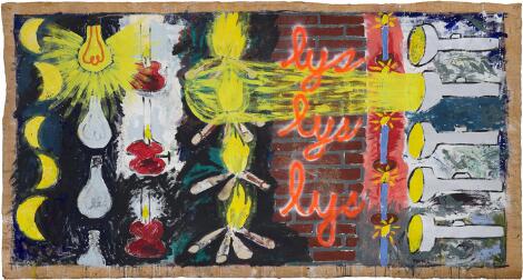 2544/559LyngbyLars Ravn: "Lys", 1982. Unsigned. Oil on canvas. C. 175 x 335 cm. Unframed.