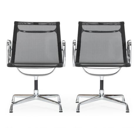2544/533AarhusCharles Eames, Ray Eames: "Aluminium Group". A pair of armchairs with aluminium swivel frame. Stretched with black mesh. Manufactured by Vitra. (2)