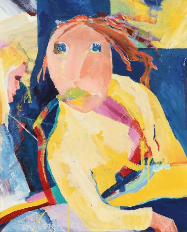 2544/511LyngbyLeif Sylvester: "Liva på café", 1988. Signed Sylvester 88. Oil on canvas. 75 x 60 cm.
