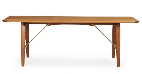 2544/557AarhusBørge Mogensen: "Hunting Table". A walnut dining table with angled brass bars. H. 72. L. 210. W. 82 cm.