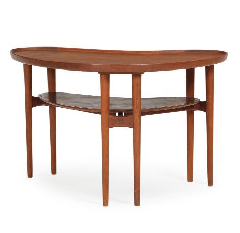 2544/521AarhusArne Vodder: A teak coffee table with six-legged frame. Top with raised edges. Made by Bovirke. 1950-60s. H. 55. L. 98. W. 78 cm.