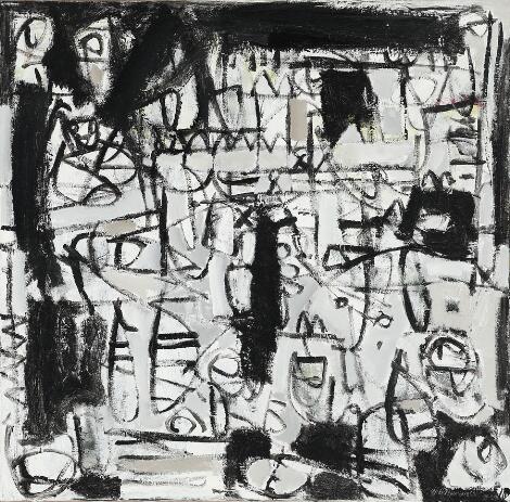 2544/550LyngbyÓli G. Jóhannsson: Composition, 1998-1999. Signed, titled and dated on the reverse. Oil on canvas. 80 x 80 cm.