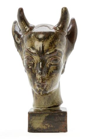 2544/525LyngbyJohannes Hedegaard: "Aktæonhoved". A stoneware bust. Decorated with Dilou glaze. Signed 4/10, 21089. H. 39.3 cm.