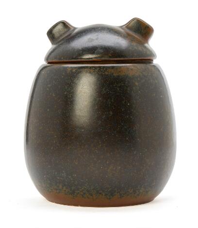 2544/540LyngbyErik Rahr: A stoneware tobacco jar, decorated with brownish black and reddish brown glaze. H. 15 cm.