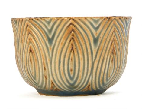2544/513LyngbyAxel Salto: A circular stoneware bowl modelled in fluted style. Decorated with Sung glaze. H. 6.2 cm. Diam. 12 cm.