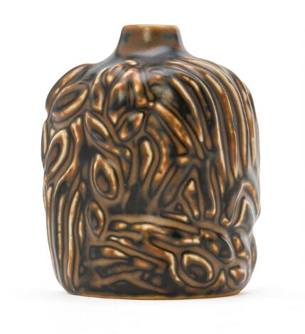 2544/510LyngbyAxel Salto: A small stoneware vase modelled with relief plant decor. H. 7.8 cm.