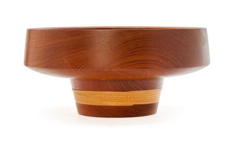 2544/531Kay Bojesen: A circular, footed solid staved teak bowl. Foot with cane. H. 11.3 cm.