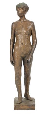 2544/527AarhusKarin Lanng: Standing woman, 1979. Signed Karin Lanng. Patinated bronze. H. 93 cm.