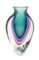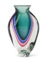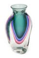 A clear glass vase with pink, blue and green glass underlay. Signed Michele Onesto, Murano. Made and marked by Oball, Murano, Italy. H. 21.3 cm. W. ca. 14 cm.