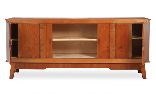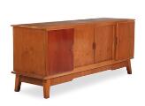 Art Deco elmwood sideboard, front with two sliding doors and two doors, behind which shelves. 1930s. H. 80. W 193. D. 53.
