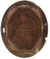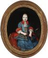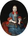 Portrait of a child in elegant dress hold a bird on a string. Unsigned. Oil on canvas. Octogonal stretcher. 84×65 cm.