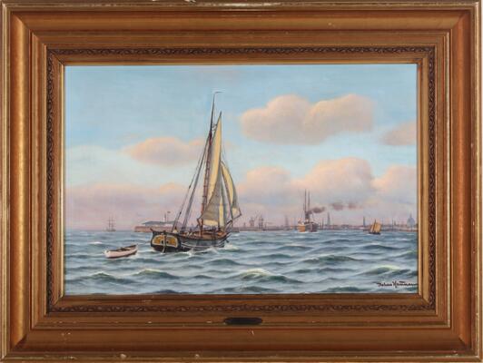 View of Copenhagen harbour. Signed Johan Neumann. Oil on canvas. 33×52 cm.