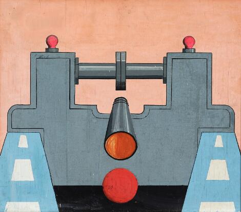 2550/927Erik Clausen: "Kærnekraft", 1966. Signeret på bagsiden med datering. Olie på lærred. 45 x 65 cm.