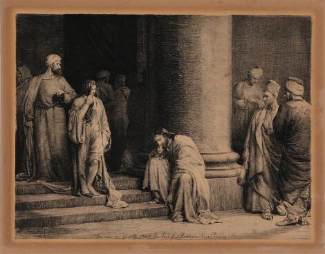 2545/197Carl Bloch: “Kristus og Synderinden”. Tryksign. Carl Bloch 1889. Radering. 22,5 x 28,5 cm. Uindrammet.