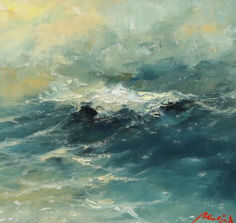2551/730AarhusAxel Lind: Waves. Signed Axel Lind. Oil on canvas. 37 x 38 cm.