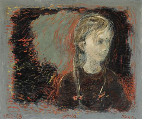 Kay Christensen: "Gerda". Signeret Kay C, 1962-63; med signatur, titel og datering på bagsiden. Olie på lærred. 54 x 65.
