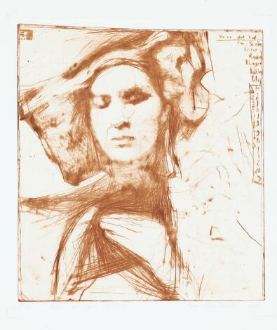 Peter Martensen: Portrait. Signed Peter Martensen 1985, 6/10. Etching. Sheet size 63 x 50 cm.