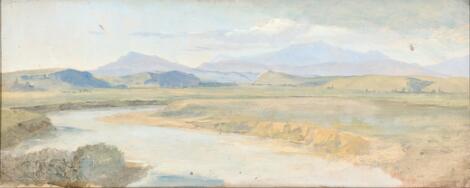 2545/9002Jørgen Sonne: From the Roman Campagna near Fontana Acetosa. A study. Unsigned. Oil on paper laid on cardboard. Cirka 15 x 27 cm.