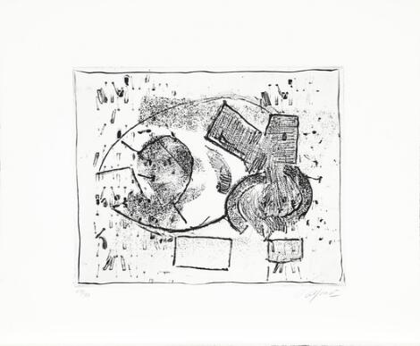 Robert Jacobsen: "Ud af intet kommer du blødt gående", 1979. Signed in the colophone Rob. Jacobsen & Jørgen Gustava Brandt. Sheet size 57 x 38 cm.