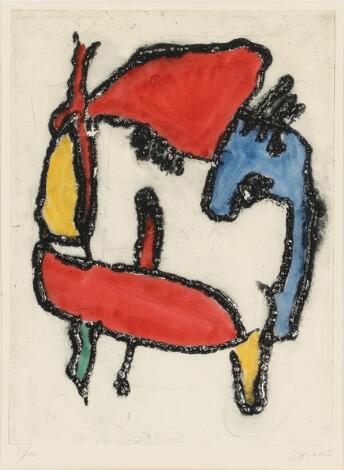 Robert Jacobsen: "Kraka". Signed Rob. Jacobsen, 63/80. Handcoloured etching. Sheet size 65 x 50 cm.