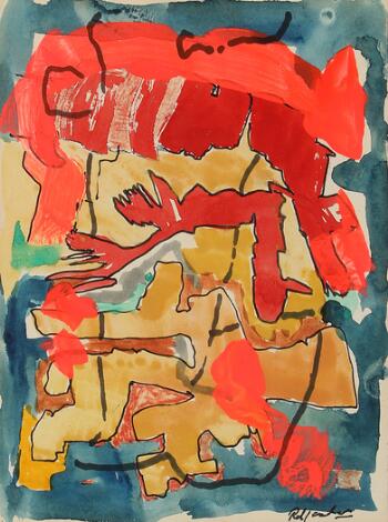 Robert Jacobsen: Untitled. Signed Rob Jacobsen. Mixed media on paper. Visible size 60 x 45 cm.