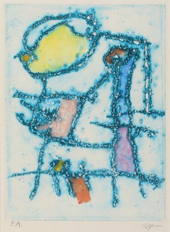 Robert Jacobsen: Untitled. Signed Rob. Jacobsen, E.A. Handcoloured etching. Visible size 32 x 41 cm.