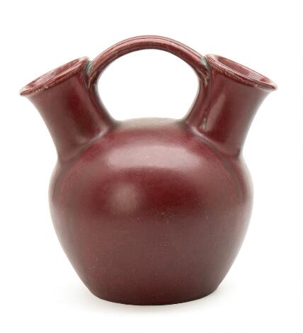 2551/1071LyngbyBode Willumsen: Stor dobbeltvase af stentøj med buet hank. Dekoreret med okseblodsglasur. Kgl. P. H. 26.
