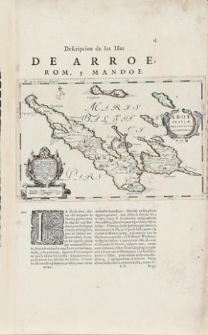 2551/156LyngbyJohan Blaeu: "Description de la Islas de Arroe". 1665. Håndkoloreret kobberstik. Bladstørrelse 52,5 x 33,5 cm. Uindrammet.