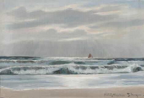 2548/182AarhusPoul Friis Nybo: Seascape, presumably from Skagen. Signed Friis Nybo. Oil on canvas. 48.5 x 64 cm.