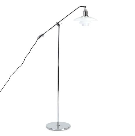 332/52LyngbyPoul Henningsen: “The Water Pump”. PH 3/2 Floor lamp with high gloss chromed steel frame and white opalized three-layer glass shades.