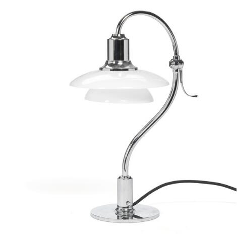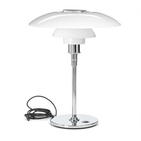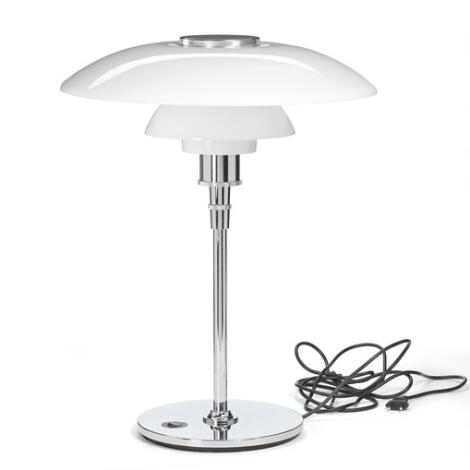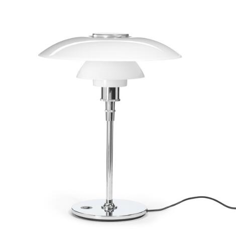 332/80LyngbyPoul Henningsen: "PH 4,5/3,5". Chromed metal table lamp. Opal glass shades. H. 55 cm.