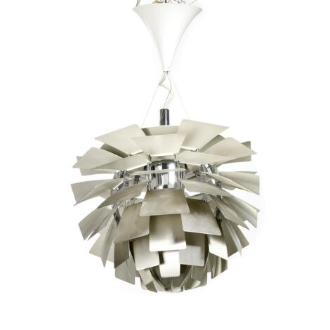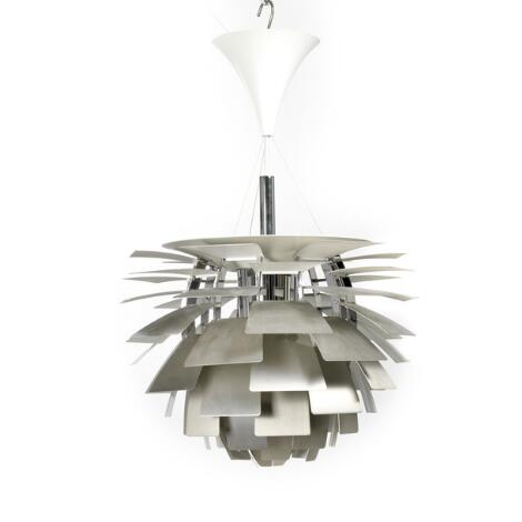 332/13LyngbyPoul Henningsen: "Artischoke". Pendant with brushed steel lamellaes. Manufactured and marked by Louis Poulsen. Diam. 48 cm.